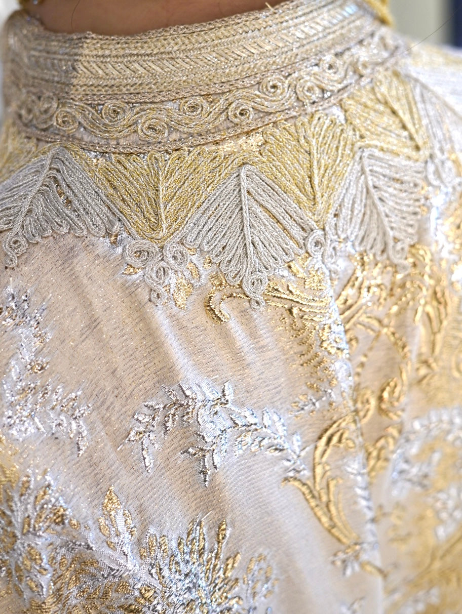 ✨ Elegant Jacquard Fabric: Enjoy the beauty of soft gold jacquard with silver accents, blending traditional charm with a truly modern touch.