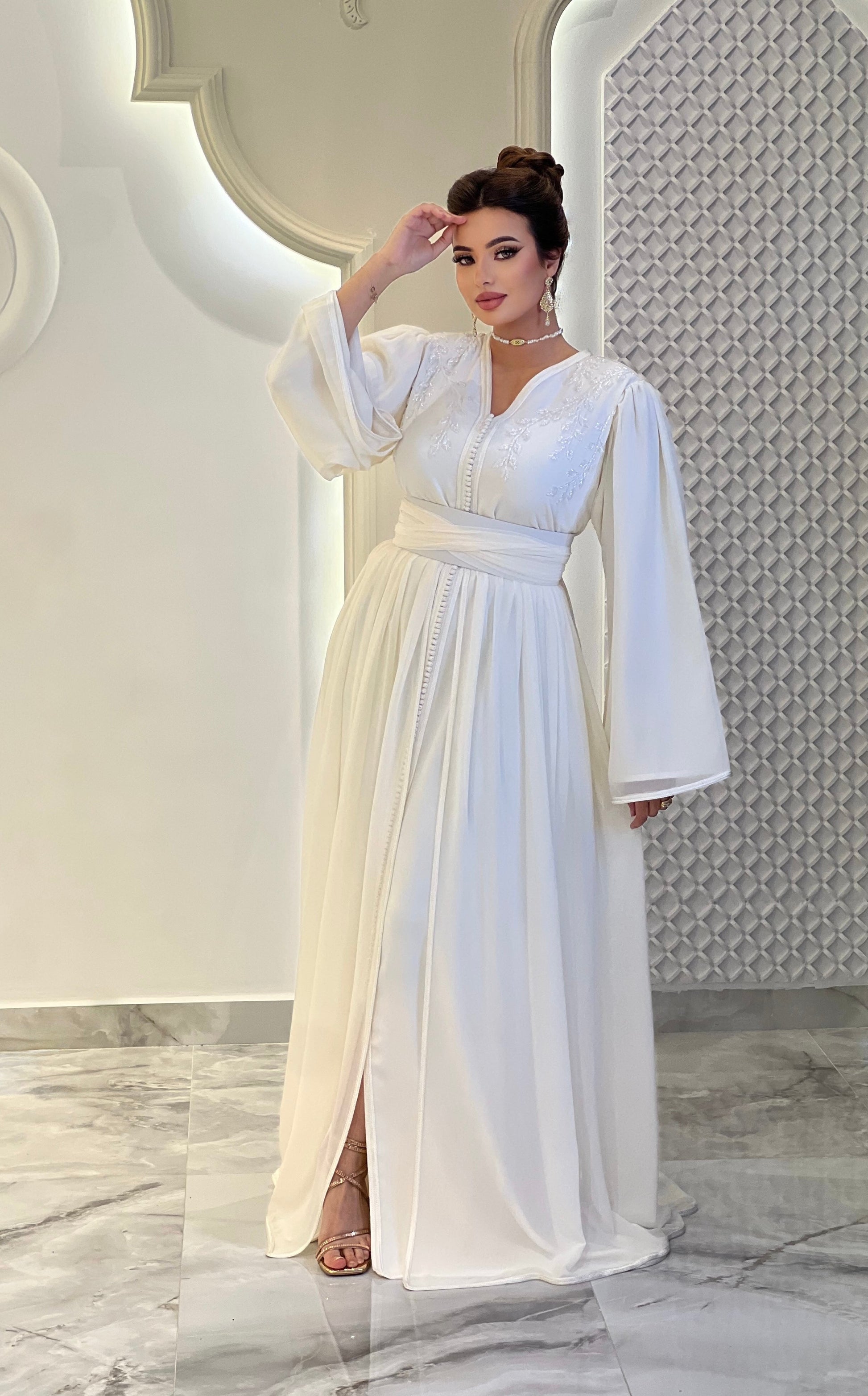 Step into timeless beauty with this Off-white Lebsa, designed to make you shine at every special occasion.